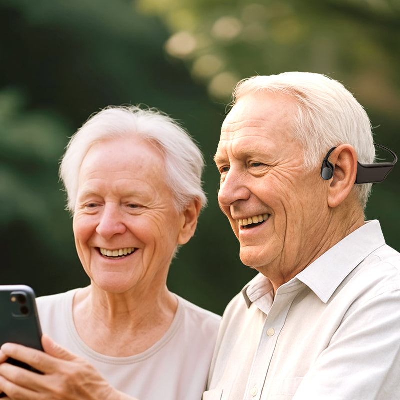 CONDUCCIÓN ÓSEA AUTÉNTICA : Gracias a la avanzada tecnología de conducción ósea, estos auriculares transmiten las vibraciones sonoras directamente a través de los pómulos, dejando el canal auditivo despejado. Esto elimina la obstrucción y las molestias, garantizando un sonido nítido y sin perder la percepción del entorno. Ideales para personas con pérdida auditiva, ofrecen una experiencia auditiva natural sin la presión habitual de los auriculares.