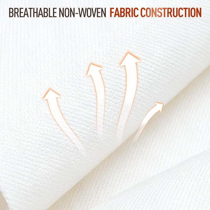 CONSTRUCCIÓN DE TEJIDO NO TEJIDO TRANSPIRABLE – Elaborado con material no tejido de calidad médica que permite que la piel respire mientras mantiene la temperatura óptima. La tela hipoalergénica previene irritaciones y garantiza comodidad durante un uso prolongado sin acumulación de humedad ni molestias.