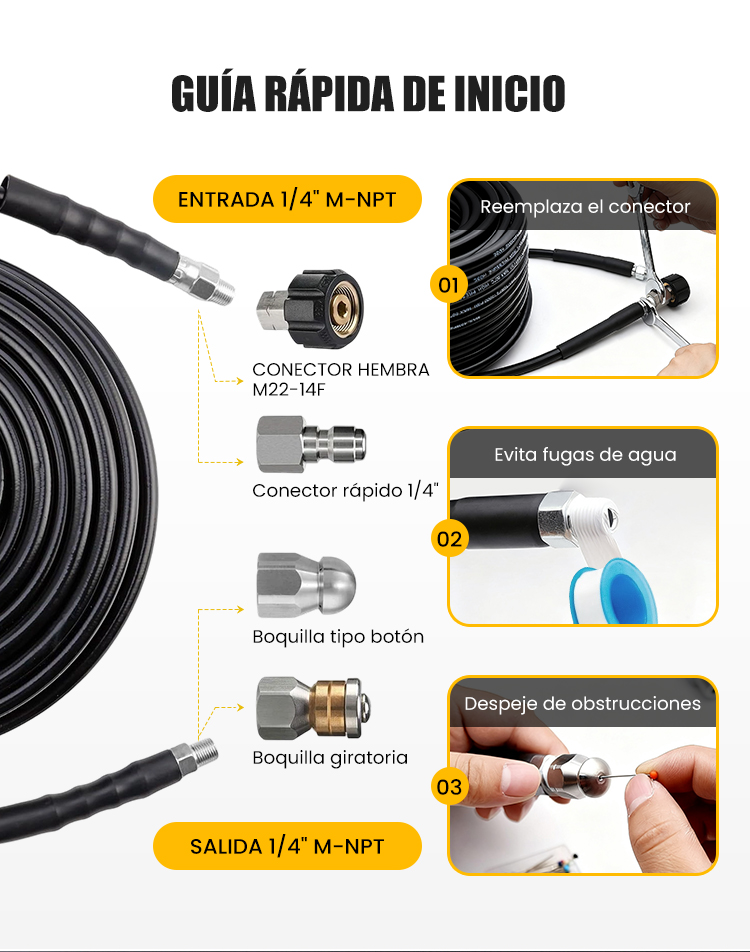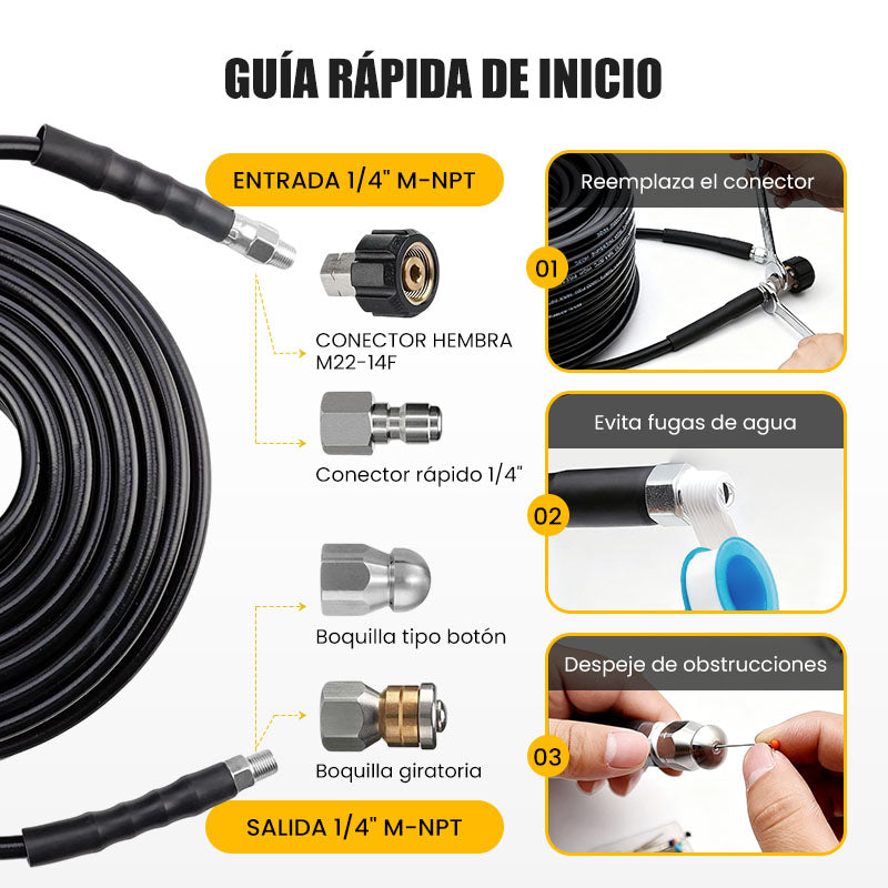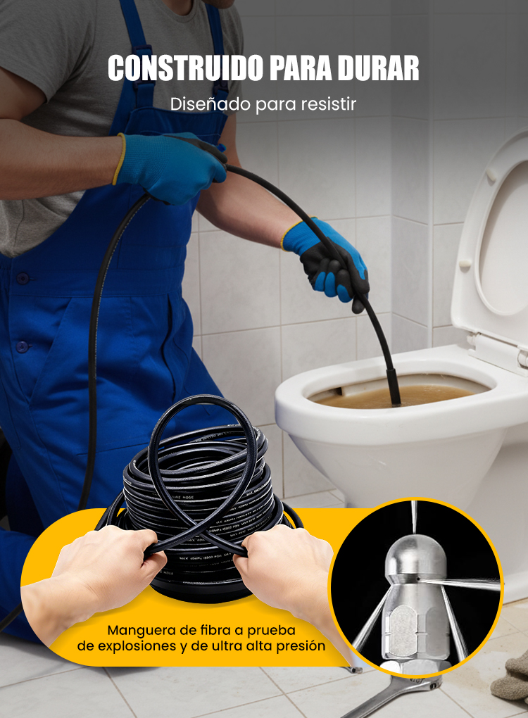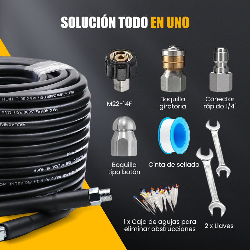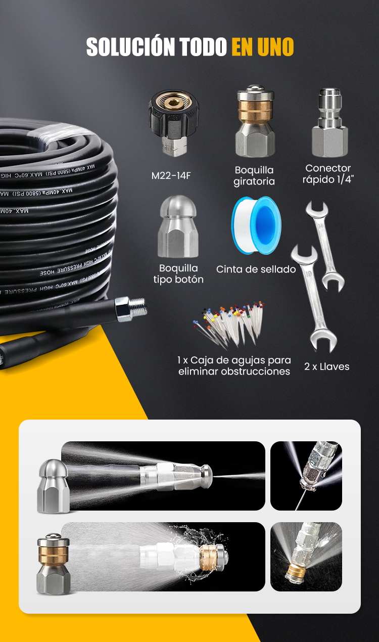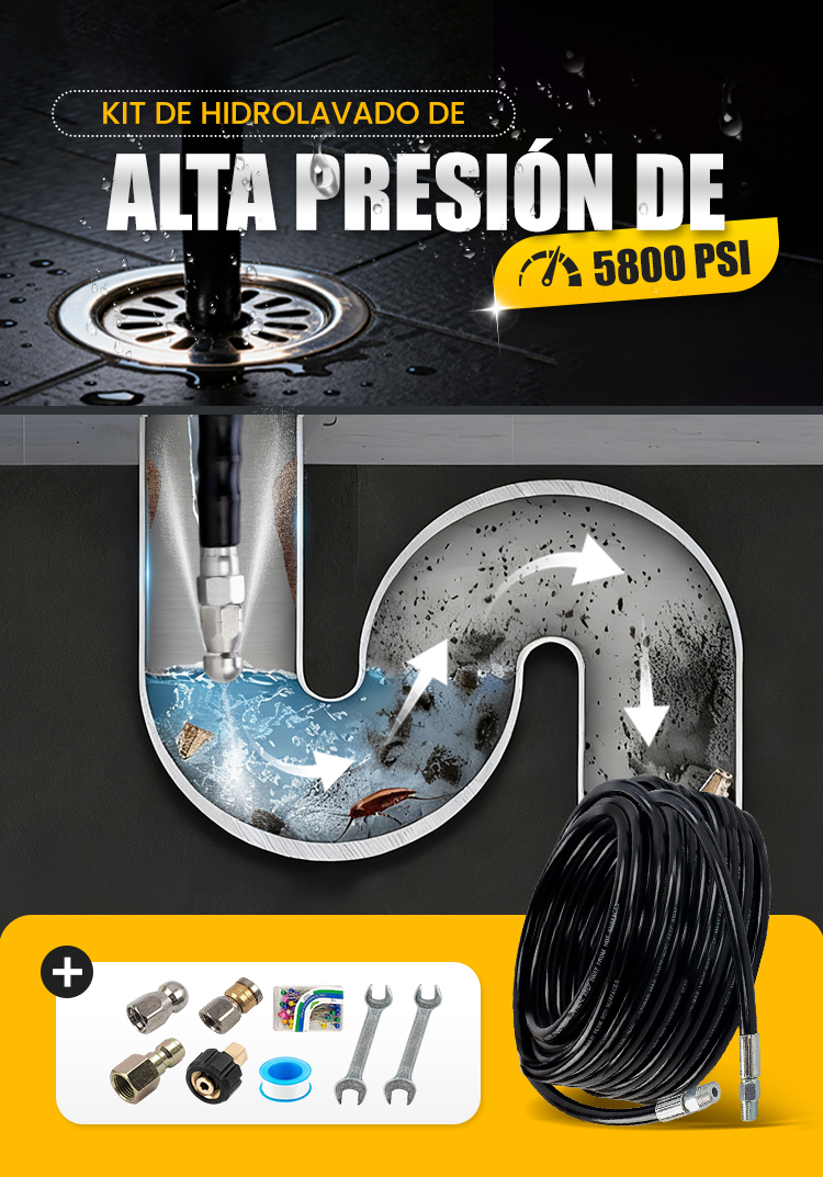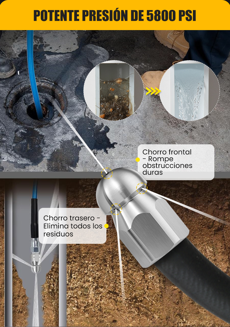 🚿 Kit de Limpieza para Alcantarillado 5800 PSI - Boquilla Rotativa y Manguera Reforzada para Desatascar Tuberías 🛠️✨